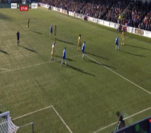 久攻不下情况下,水晶宫后防线却在防守定位球时漏人。第43分钟,道森抢点破门,麦克斯菲尔德1-0领先。